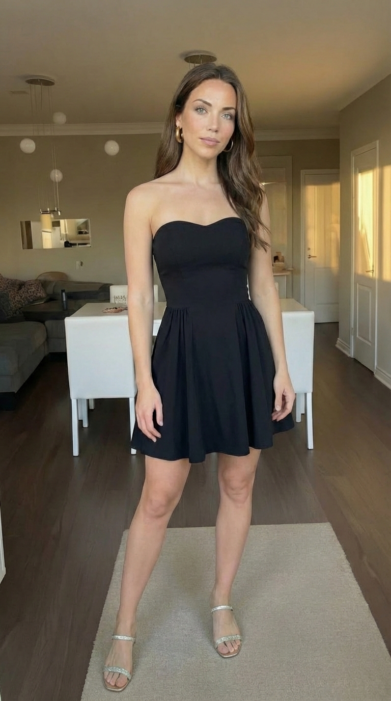 If the bust feels tight, a silicone-backed strapless bra can help with both support and keeping the dress in place. If the dress is slightly loose at the waist, a small safety pin or a discreet body tape can temporarily secure it for the evening.