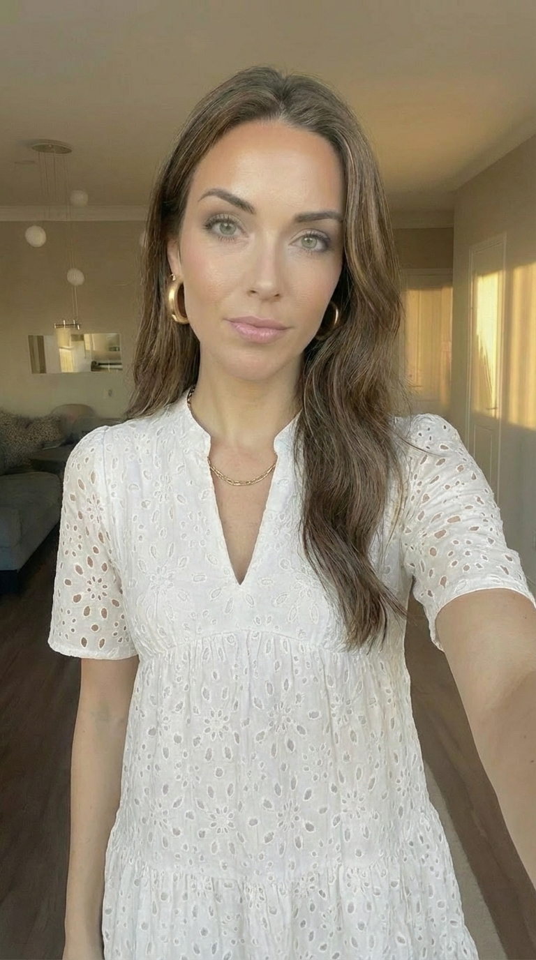For errands or coffee dates, the dress felt comfortable and appropriate. With simple sandals and a tote, it created a low‑effort daytime look. Moreover, the lightweight fabric kept the outfit breezy.