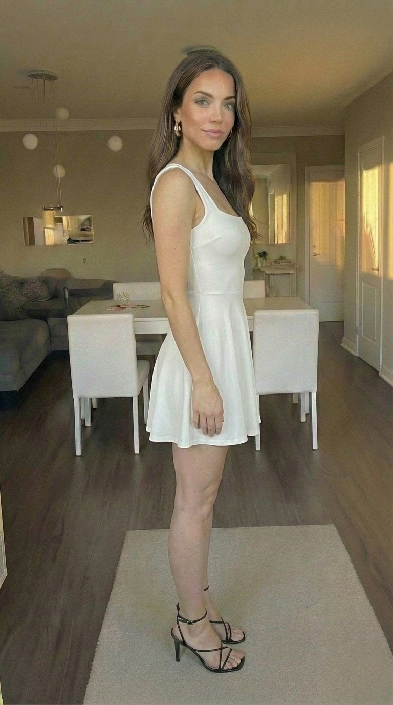 For evening plans, I added block heels and a statement necklace. The square neckline held jewelry well. Furthermore, the A‑line shape kept the outfit balanced and polished.