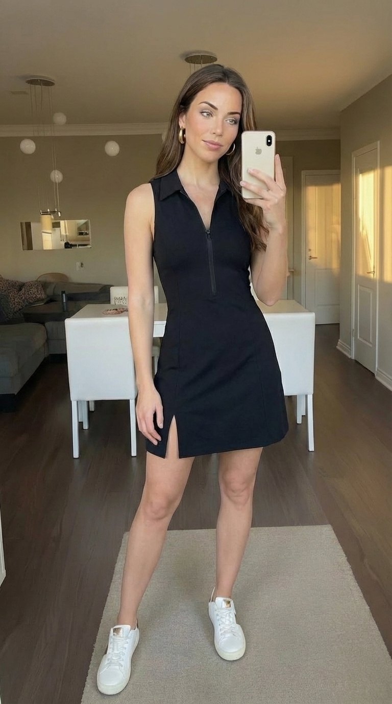 The design shifts easily from sporty to casual. You can wear it for tennis, golf, errands, or casual meetups.