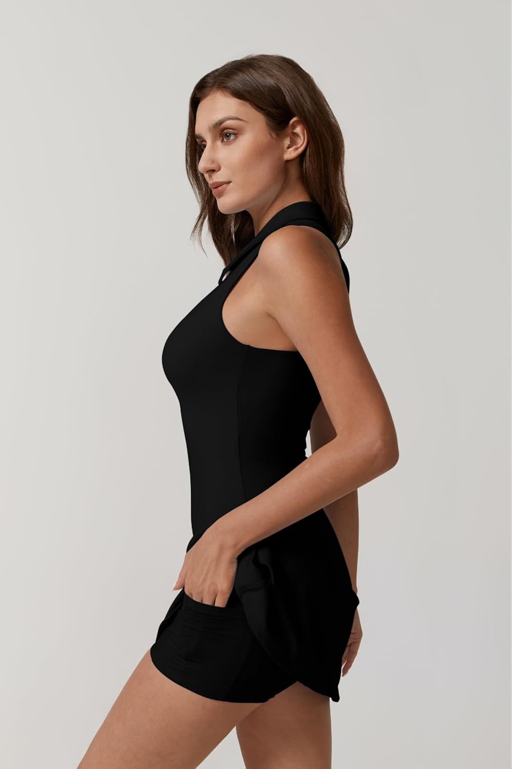 2‑in‑1 Tennis Dress: This workout dress includes mesh shorts but no bra. It gives full coverage and easy movement. Additionally, the undershorts have two side pockets that keep essentials close and secure.