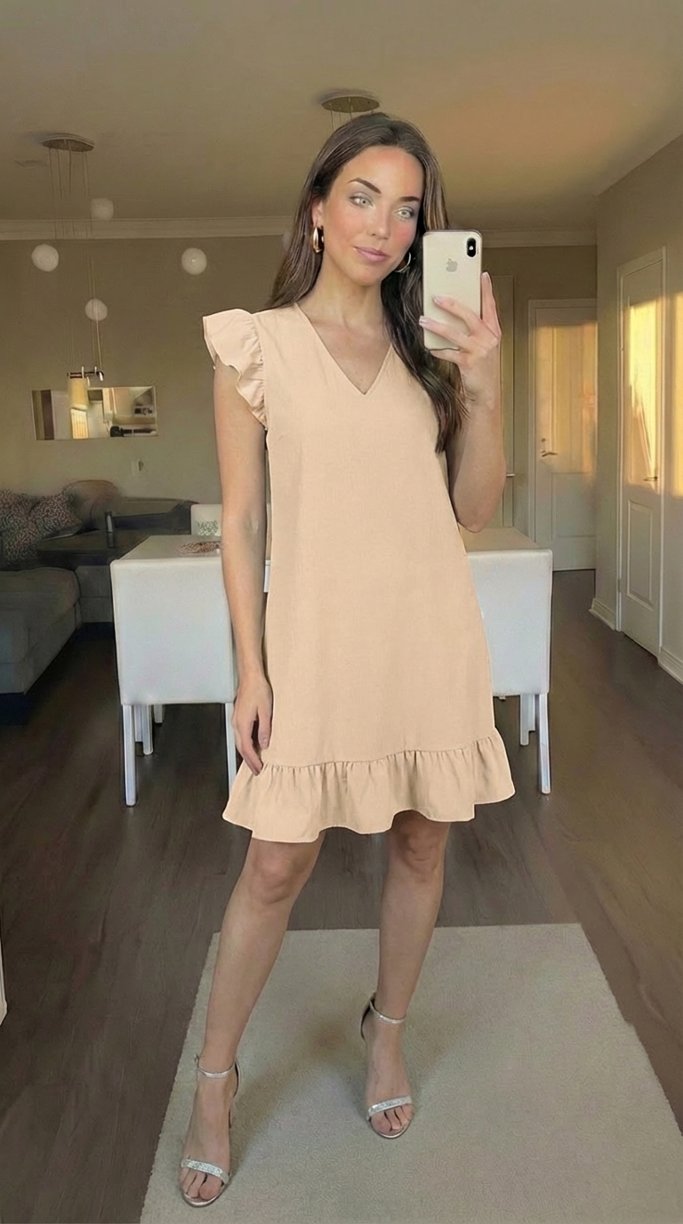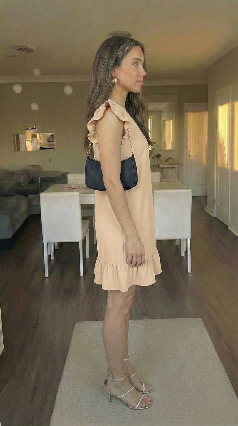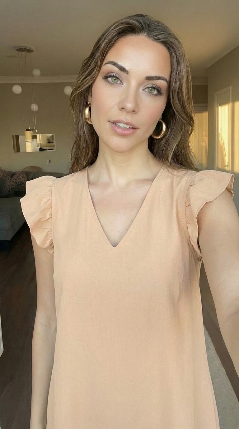 To dress it up, I add a delicate necklace, heeled sandals, and a clutch. Additionally, the V‑neck works well with jewelry, and the ruffle adds interest without needing heavy accessories. It’s an easy way to shift from day to evening.
