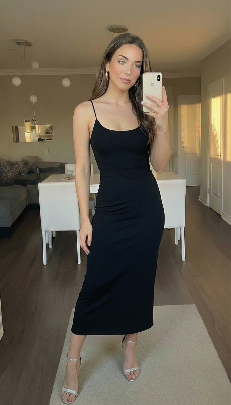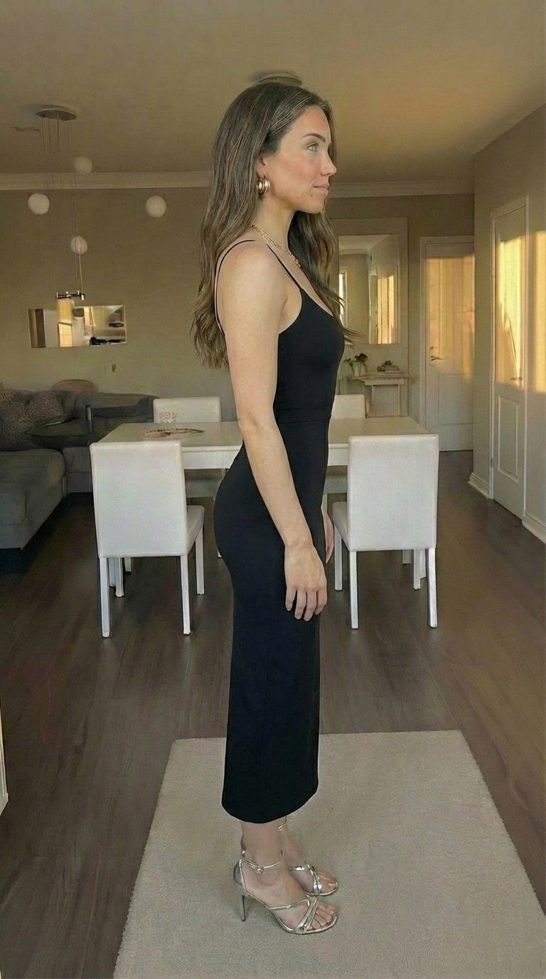 For evening, I swapped sneakers for heels and added statement earrings. Additionally, I layered a tailored blazer for structure. The scoop neck also works well with necklaces. The long silhouette pairs nicely with strappy sandals or block heels.