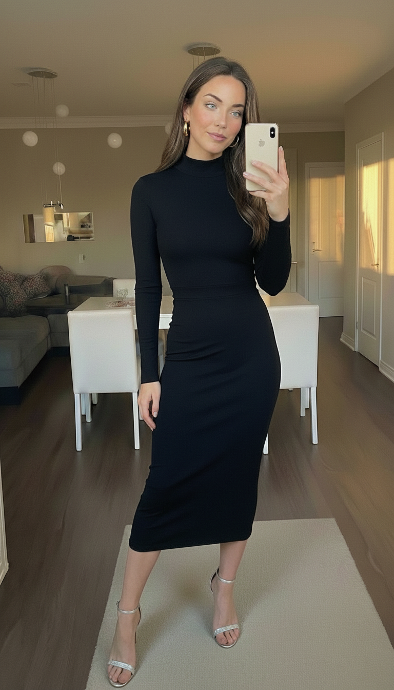 For evenings, I swapped sneakers for strappy heels and added a statement clutch. Additionally, bold lipstick made the look more glamorous. The mock neck also created a chic backdrop for long earrings or a slim choker.