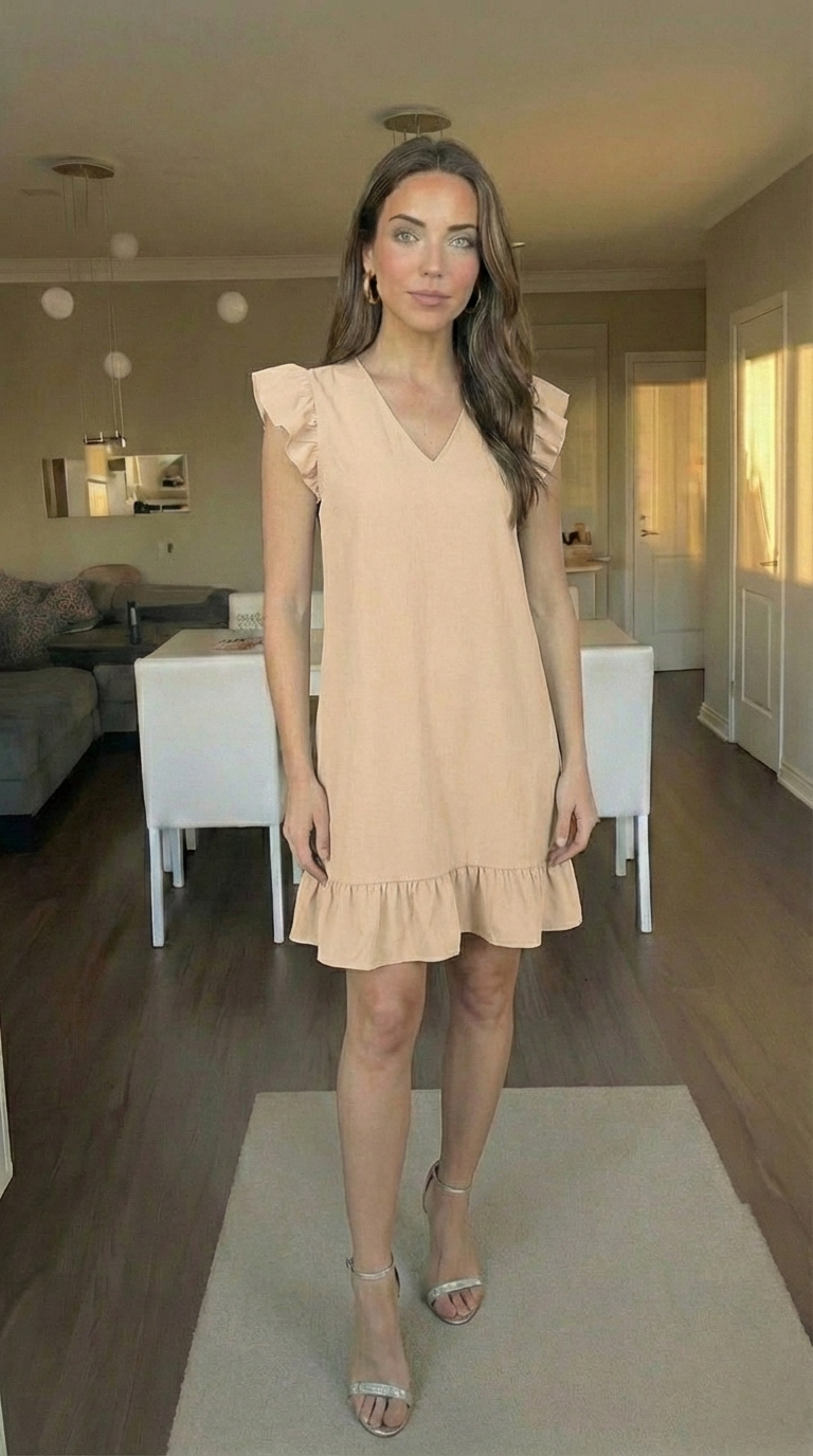 When I first took the dress out of the package, the fabric smelled clean and the stitching looked tidy at a glance. The ruffle hem gives a playful finish that catches the eye, and the V-neck with cap sleeves creates a simple, flattering silhouette I could see myself reaching for often.