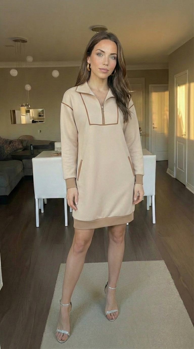 I particularly enjoy the half-zip detail and the contrast trim, which set it apart from more basic sweatshirt dresses I own. The fit, comfort, and versatility made it a staple in my casual wardrobe rotation.