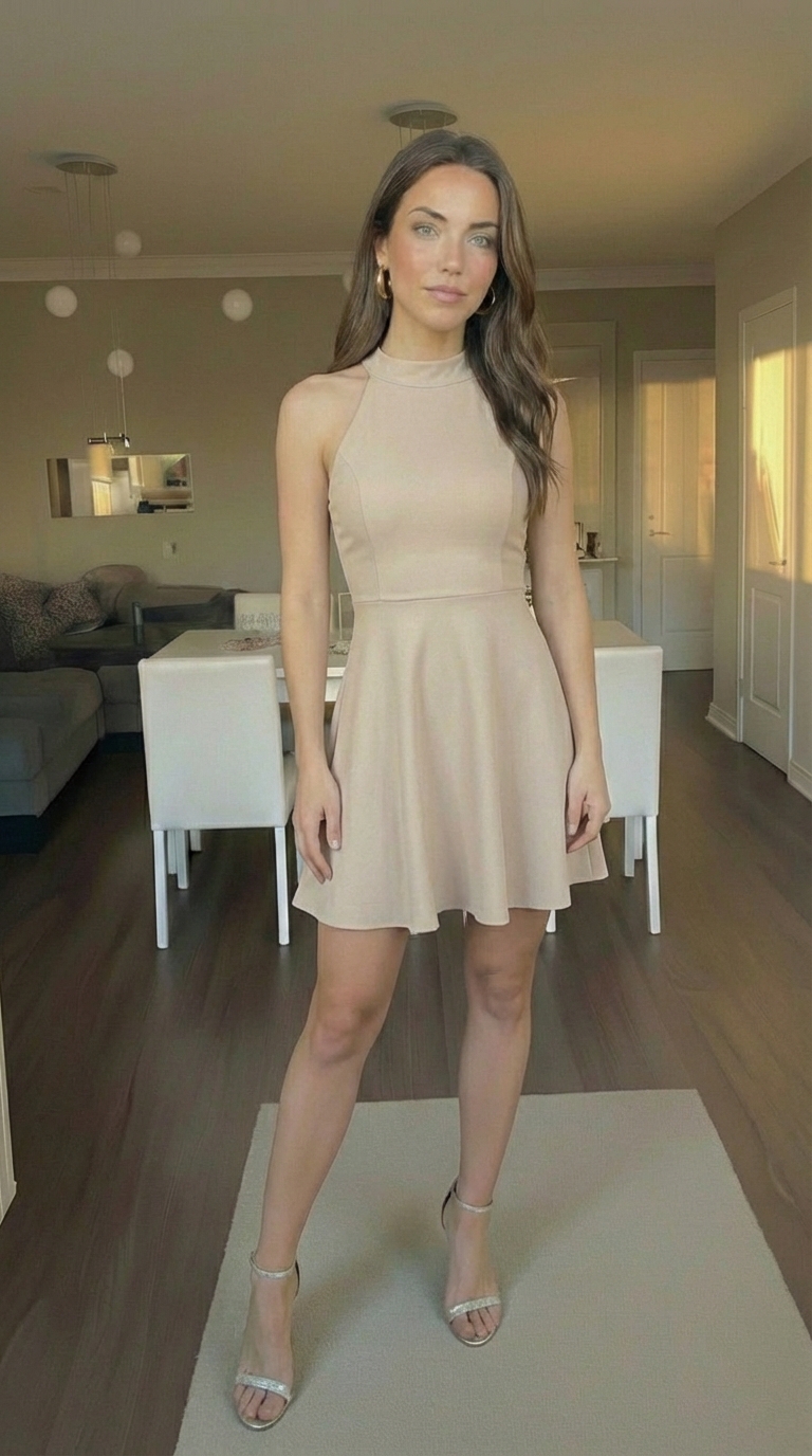 - Outdoor Party: For a garden party at sunset, I added a light shawl and wedges. The boat neck kept the look polished while the mini length stayed summery.